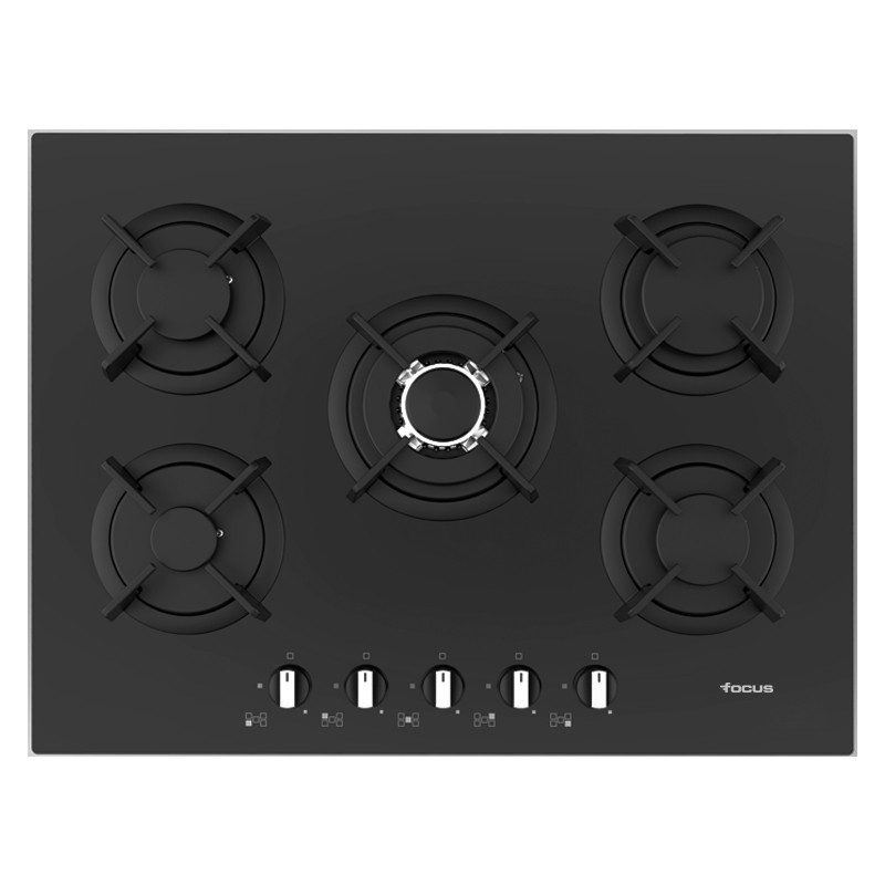 Table de cuisson Encastrable Focus – Largeur : 70 cm – Vitro Noir – Nombre de Bruleurs : 4 Bruleurs à Gaz – Grilles et chapeaux de brûleurs émaillées – Allumage Automatique – Commandes frontales – Flamme stabilisée – Couleur : Noir – Dimensions : 510 x 700 x 55 mm