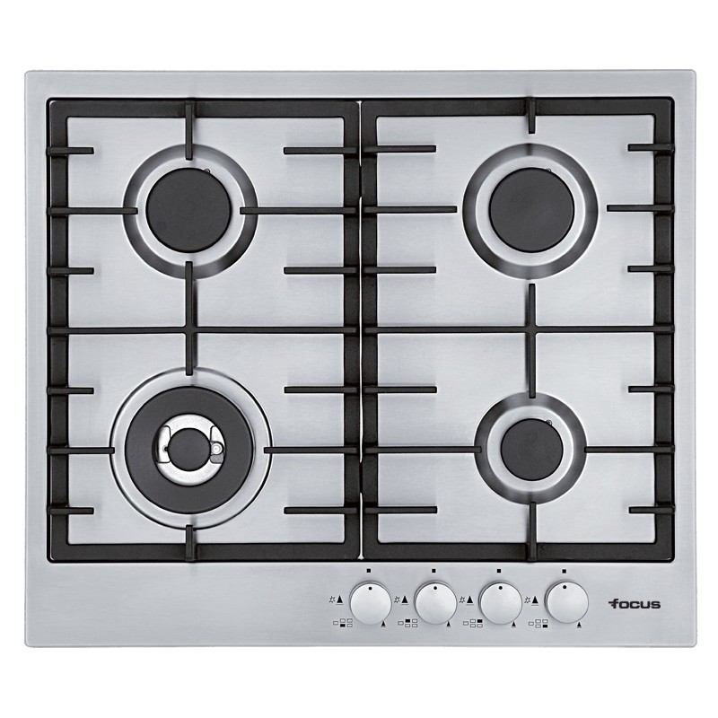 Plaque de cuisson Focus F.4789X – Largeur 90cm – 5 brûleurs à gaz, l’un triple couronnes – Flamme stabilisée – Grilles et chapeaux de brûleurs en fonte – Allumage automatique – Commandes frontales – Couleur Inox