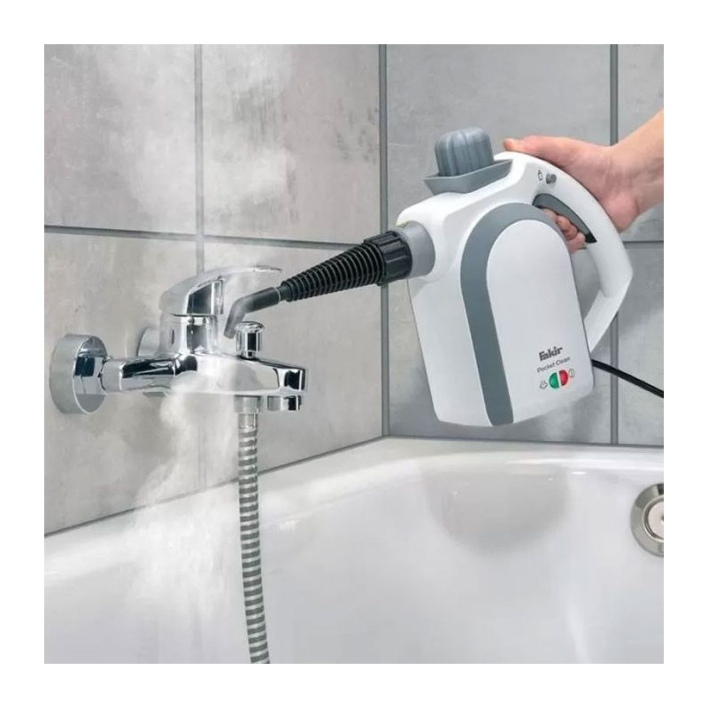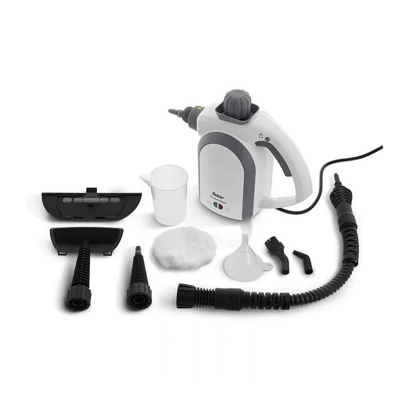 Nettoyeur à Vapeur FAKIR Pocket Avec 8 Accessoires – Puissance: De 950w jusqu’à 1100 w – Capacité du réservoir: 450 ml – Longueur du câble: 6m – Nettoyer et désinfecter des deux côtés – Couleur: Blanc – Garantie: 1 an