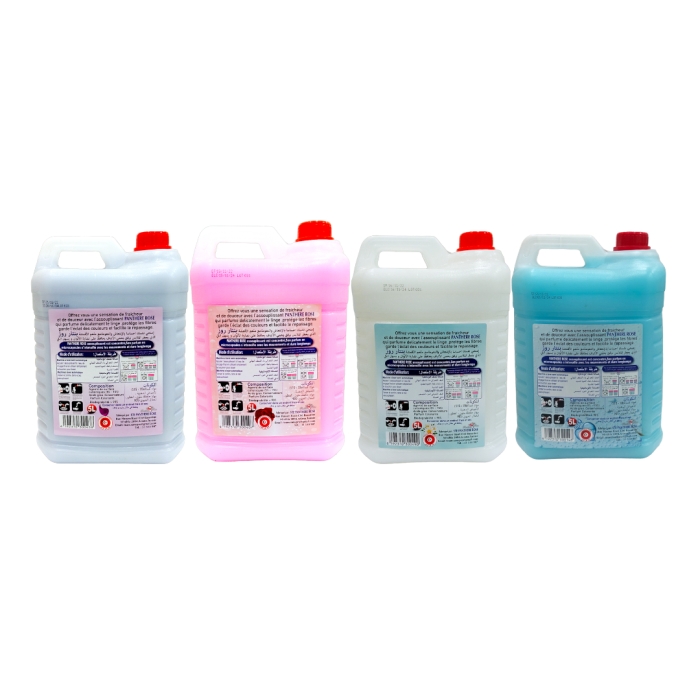 Pack de 4 Assouplissant 5 L Assouplissant Violet Rose Blanc Bleu