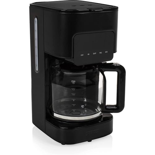Cafetière Programmable PRINCESS 246014 – Puissance: 900 W – Capacité 10 à 15 tasses – Capacité du réservoir d’eau: 1.5 L – Bol en verre – 1 élément de chauffe – Température max 100°C – Fonction minuterie digitale – Témoin lumineux de fonctionnement – Bouton marche arrêt – Arrêt automatique – Système anti-gouttes – Filtre permanent – Pieds antidérapant – Couleur: Noir – Garantie: 2 ans