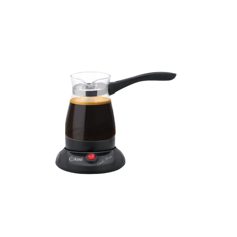 Machine à café turque en verre Kiwi KCM 7514 – 400 ml capacité 6 tasses – bouton marche / arrêt éclairé – Base rotative à 360 degrés et fonction d’utilisation sans fil – acier inoxydable – Système de sécurité – ébullition rapide – Puissance: 800 W – Couleur: Noir – Garantie 1 an