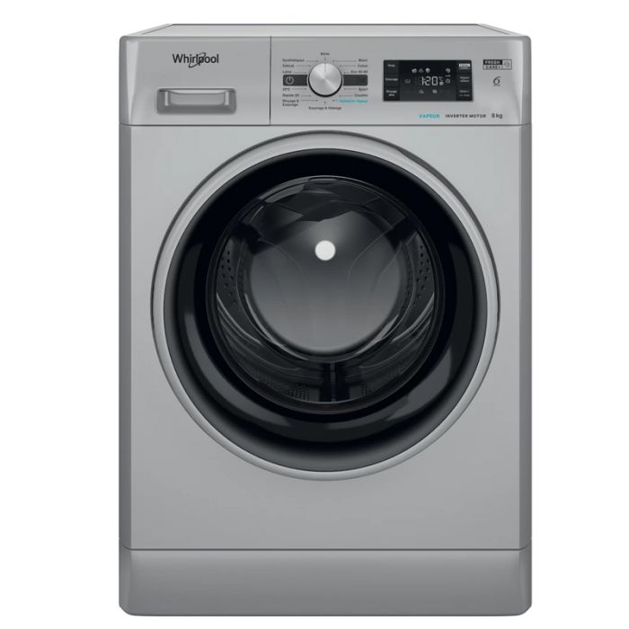 lave linge Frontal WHIRLPOOL – Capacité de lavage: 8 kg – Consommation d’eau annuelle: 11594 Litres/an – Vitesse d’essorage: 1200 tours /min – Efficacité Énergétique: A+++ – Consommation d’énergie annuelle: 177 KWh/an – Programme Rapide – Affichage du temps restant – Programme Couleurs – Sécurité enfant – Technologie: 6ème Sens – FreshCare+ – Écran: LCD – Pieds ajustables – Dimensions: H x L x P: 85 x 59.5 x 63 cm – Couleur: Silver