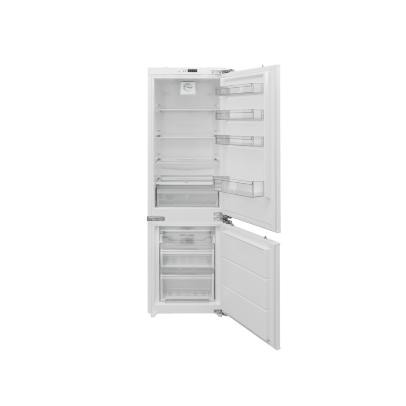 Refrigerateur Combine TELEFUNKEN Encastrable – Volume brut nominal : 249 litres – Volume du réfrigérateur Net : 180 Litres – Volume du congélateur Net : 63 Litres – Système de refroidissement : No Frost – 2 Portes encastrable – Contrôleur d’humidité – No Frost Turbo fan air cooling – Bac à légumes à humidité contrôlée – Balconnets de porte réglables – Afficheur à bouton-poussoir – Éclairage LED – Bac à glaçons – Classe climatique TROPICAL/NORMAL (T/N) – Accessoires transparents – Portes réversibles – Pieds de nivellement – Rouleaux avant et arrière – Dimensions mm (HxLxP) : 1770 x 540 x 545 – Garantie 3 ans