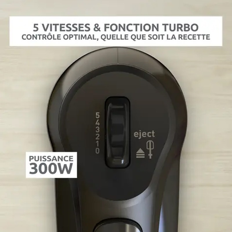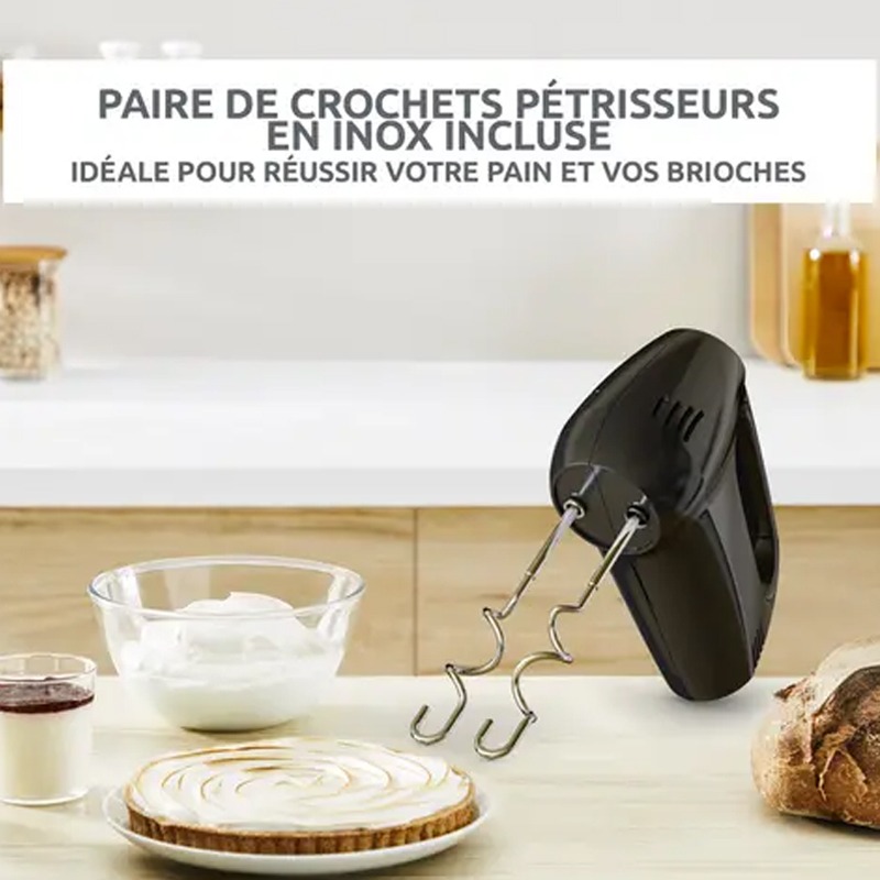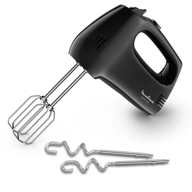 Batteur À Main MOULINEX Prep’Mix – Puissance: 300 Watts – Nombre de Vitesse: 5 vitesses – Robuste et efficace – Contrôle facile – Fouets en Acier inoxydable – Poignée ergonomique pour une prise en main confortable – Design ergonomique – Pièces compatibles lave-vaisselle – Couleur: Noir – Garantie: 1an