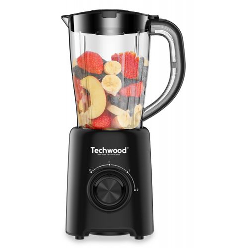Blender TECHWOOD – Puissance: 500 W – Capacité: 1.5 litres – 2 Vitesses – Fonction impulsion – Nettoyage facile – Pieds anti-dérapant – Lames en acier inoxydable – Couleur: noir – Garantie: 1an