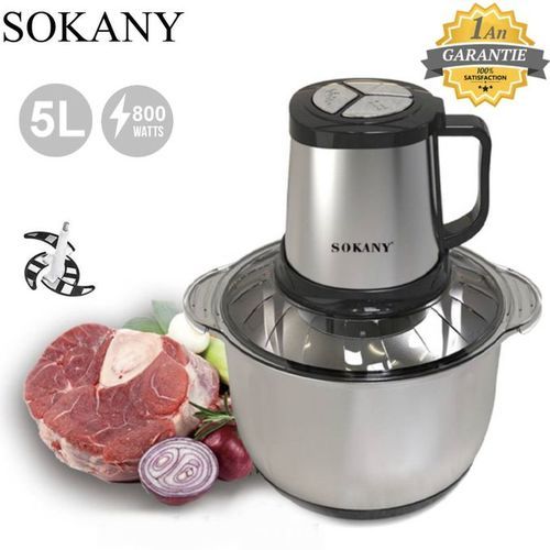 Le récipient collecteur transparent vous offre une visibilité immédiate pour vérifier la consistance de vos ingrédients hachés, vous permettant d’atteindre la perfection à chaque utilisation. Compact et élégant, le SOKANY SK-7015 s’intègre harmonieusement dans votre cuisine sans prendre beaucoup de place.Doté d’une puissance réelle de 800W et de deux modes de fonctionnement – un mode plus puissant pour la viande et un mode plus doux pour les légumes – ce hachoir électrique est équipé d’un moteur en cuivre pur qui assure une efficacité et une rapidité exceptionnelles. Les 4 lames en acier inoxydable, conçues en 4D, coupent uniformément les aliments sous tous les angles, garantissant une texture homogène.L’appareil est facile à démonter, facilitant le nettoyage après utilisation. De plus, il est livré avec un tapis antidérapant pour une stabilité accrue pendant l’utilisation. La protection contre la surchauffe et les mauvais fonctionnements assure une utilisation en toute sécurité, avec une pause automatique de 2 minutes après 30 secondes d’opération.Le bol en verre épaissi de 5L offre une grande capacité et une durabilité exceptionnelle, résistant aux chocs pour une utilisation prolongée. La liaison de joint entre la lame et le corps principal est en acier inoxydable, assurant une solidité accrue.Découvrez une nouvelle façon de hacher avec facilité, efficacité et style grâce au SOKANY SK-7015, votre compagnon polyvalent en cuisine.Puissance Réel Hachoir Électrique hachoir à viande électrique avec puissance il est plus efficace et rapide. Et avec un atout, design unique Un mode plus puissant pour viande, un mode plus douce pour légumes.Le puissant moteur en cuivre pur de permet de broyer les ingrédients en un éclair. Coupez les légumes en 6 secondes et la viande en 8 secondes avec moins de bruit.