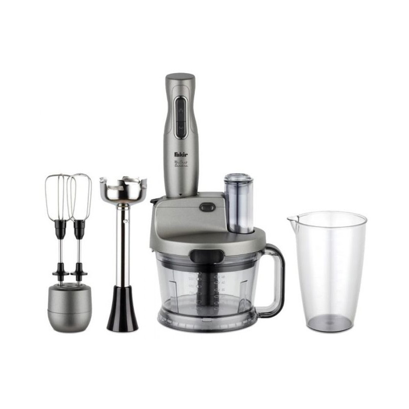 Que ce soit pour mélanger,réduire en purée, battre ou hacher – avec le blender Mr Chef Quadro de Fakir àl’avenir, tout fonctionnera parfaitement. Grâce à ses accessoirespolyvalents et de haute qualité, le mixeur combine toutes les fonctions dansune seule machine. La semelle antidérapantepratique de l’ensemble blender l’empêche de tomber et reste toujours stablependant le fonctionnement. Le mixeur plongeants’enclenche facilement et est immédiatement prêt à l’emploi. Le mixeur plongeant 4en1 secompose d’un hachoir (capacité 1,5 l), d’un gobelet mélangeur et doseur(capacité 900 ml), de 2 fouets en acier inoxydable et d’un mixeur en acierinoxydable. Le broyeur a plusieursaccessoires pour râper, raboter et déchiqueter les aliments. Notre Mr Chef Quadro tientégalement confortablement dans votre main grâce à sa forme ergonomique. Vous pouvez même produire dela glace pilée avec les couteaux en acier inoxydable à 4 ailes dans le bol dumélangeur. Préparer le pesto, les soupes,les aliments pour bébés, les trempettes et le beurre aux herbes: tout celan’est plus un problème avec notre mixeur à main Mr Chef Quadro.