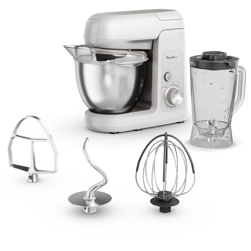 Robot Pétrin MOULINEX – Puissance: 1100 Watts – Capacité du bol: 4.6 litres – Matériel de bol: Acier inoxydable – Nombre de vitesses: 8 et Fonction pulse – Capacité du blender: 1,25 litres – Mouvement planétaire – Préparations homogènes – Accessoires compatibles au lave-vaisselle – Couvercle anti-éclaboussures – Accessoires: Fouet flexible, Fouet, Crochet pétrisseur et Mixer – Design robuste – Couleur: Gris – Garantie: 1 an