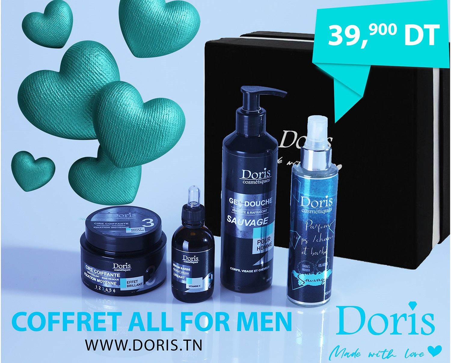 Notre coffret all for men 4 en 1 – Cire pour les cheveux 120ml – parfum barbe et cheveux 150 ml – gel douche 250 ml – sérum barbe 50 ml