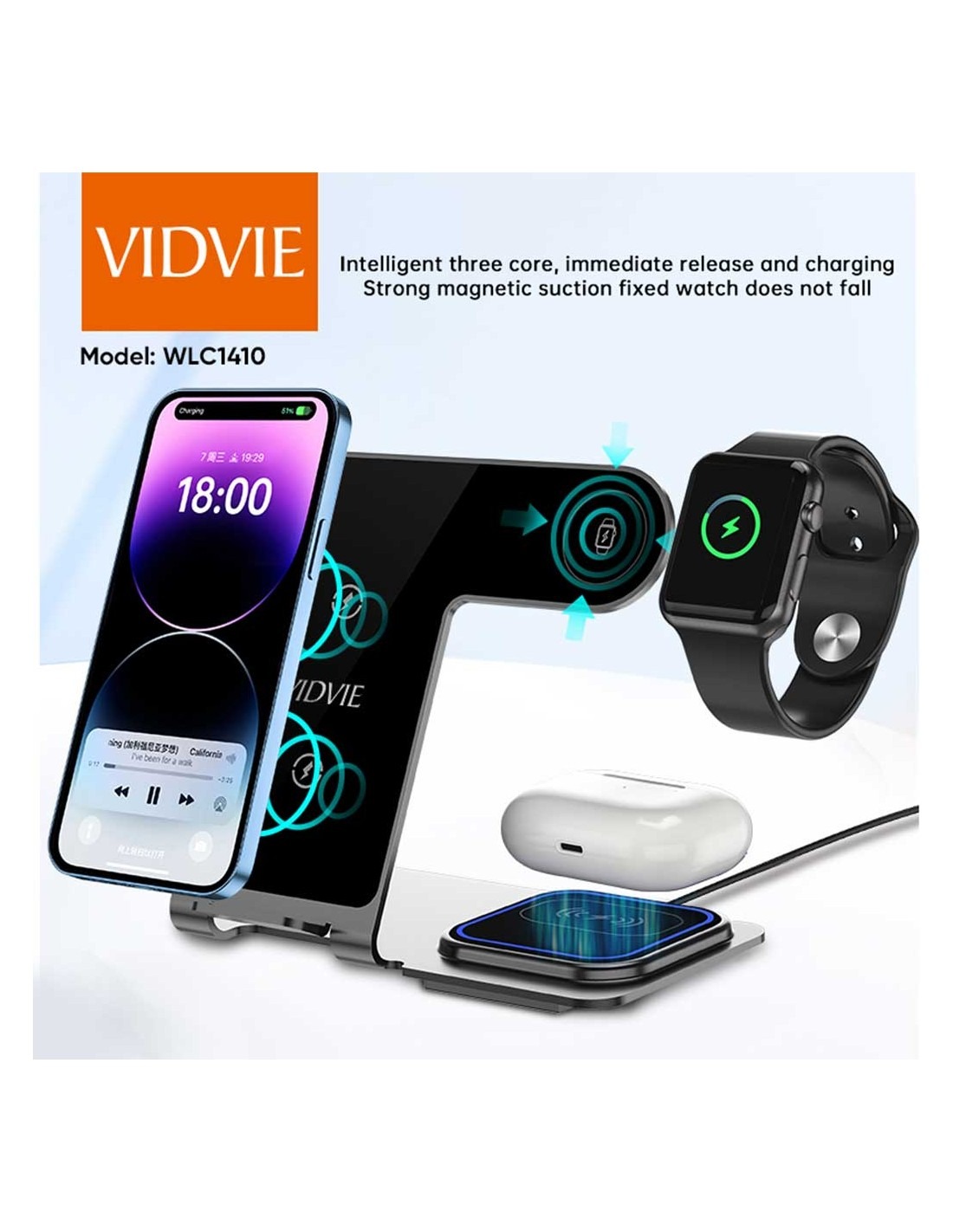 Optimisez votre espace et simplifiez vos recharges avec la station de charge Vidvie 3 en 1. Dotée d’une puissance de 15W, cette solution innovante offre une recharge sans fil rapide et sécurisée pour vos smartphones, écouteurs sans fil et montres intelligentes. Grâce à sa technologie avancée de charge sans fil, elle élimine les tracas des câbles emmêlés.