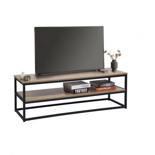 Table TV – Bois mdf marron et acier noir – H x L x l(42x120x40)cm