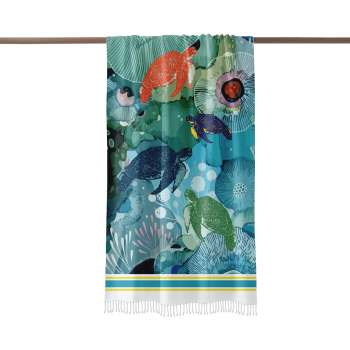 Imprimé motifs fruitiers tranches citrons et oranges avec une belle coccinelle colorée au centre sur fond bleu nuit pour une fouta tradi-moderne. Un accessoire incontournable à l’approche des beaux jours ensoleillés. Pour la déco intérieure ou pour parader avec style sur la plage, une fouta multifonctionnelle et tendance qui garantit à la fois, confort, douceur et style.