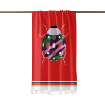 Imprimé rouge Vermillion motif coccinelle couleurs éclatantes et gaies pour une fouta tradi-moderne. Un accessoire incontournable à l’approche des beaux jours ensoleillés. Pour la déco intérieure ou pour parader avec style sur la plage, une fouta multifonctionnelle et tendance qui garantit à la fois, confort, douceur et style.