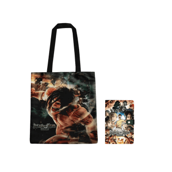 A l’effigie de Attack On Titan, les géants qui menacent d’exterminer l’humanité, un tote-bag assorti à un bloc notes affichant les motifs du célèbre Anime dans un pack ultra stylé et pratique. Prêt à vous suivre au quotidien, direction l’école ou ailleurs.