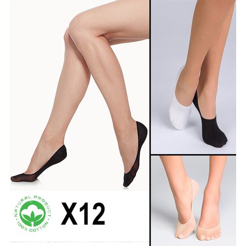 Un lot de 12 paires de chaussettes invisibles unies (4 paires blancs + 4 paires noir + 4 paires beiges) en coton très confortables à porter avec mocassin ou chaussures.- Elles conviennent à la fois à un usage quotidien et à un usage professionnel.- Elles peuvent être portées avec des chaussures de sécurité.