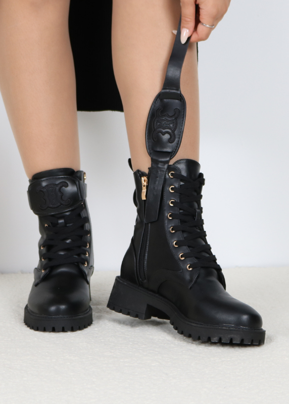 -Une paire de bottines en similicuir – Design épuré avec une semelle robuste et crantée – Fermeture éclair latérale pour faciliter l’enfilage – Bande élastique sur le côté pour un confort supplémentaire.
