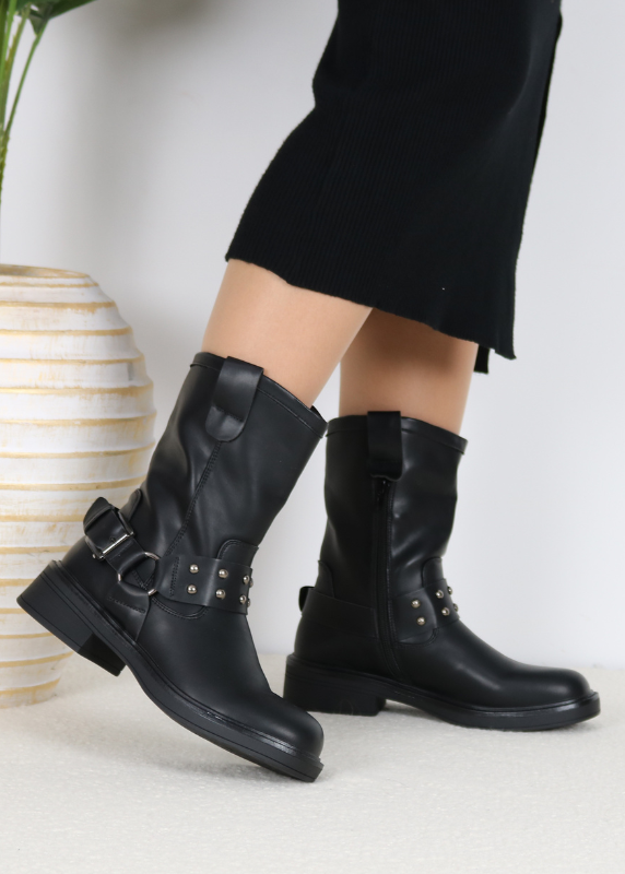 -Une paire de bottines en similicuir – Design épuré avec une semelle robuste et crantée – Fermeture éclair latérale pour faciliter l’enfilage – Bottines élégantes avec décorative sur le côté.