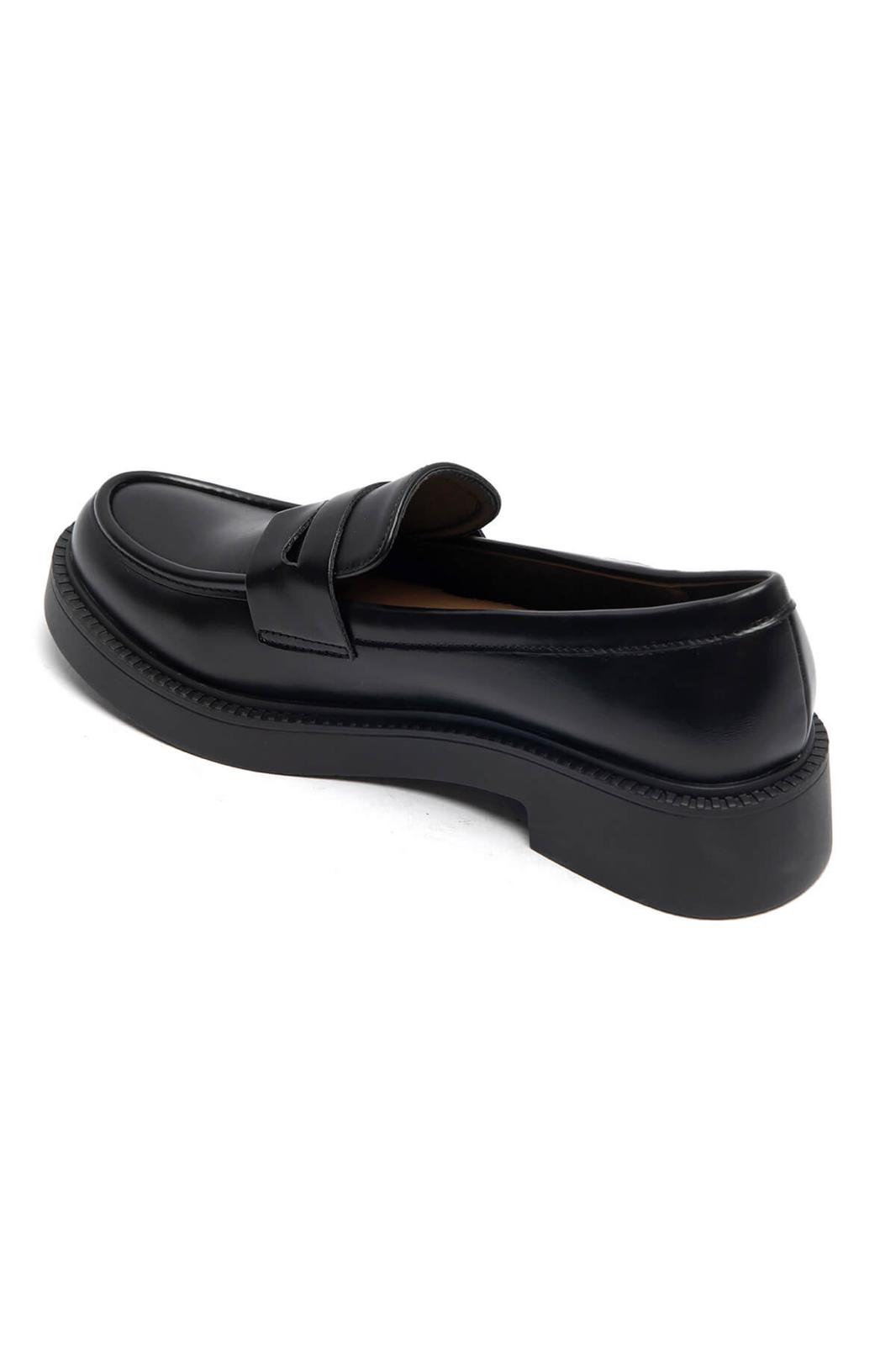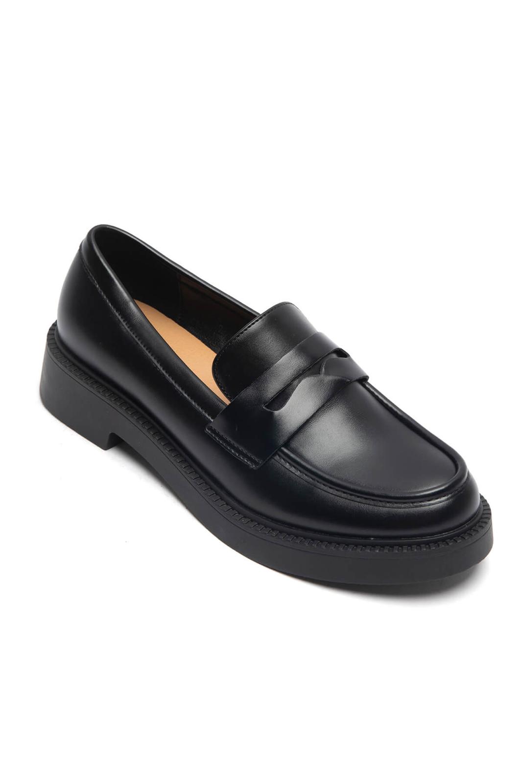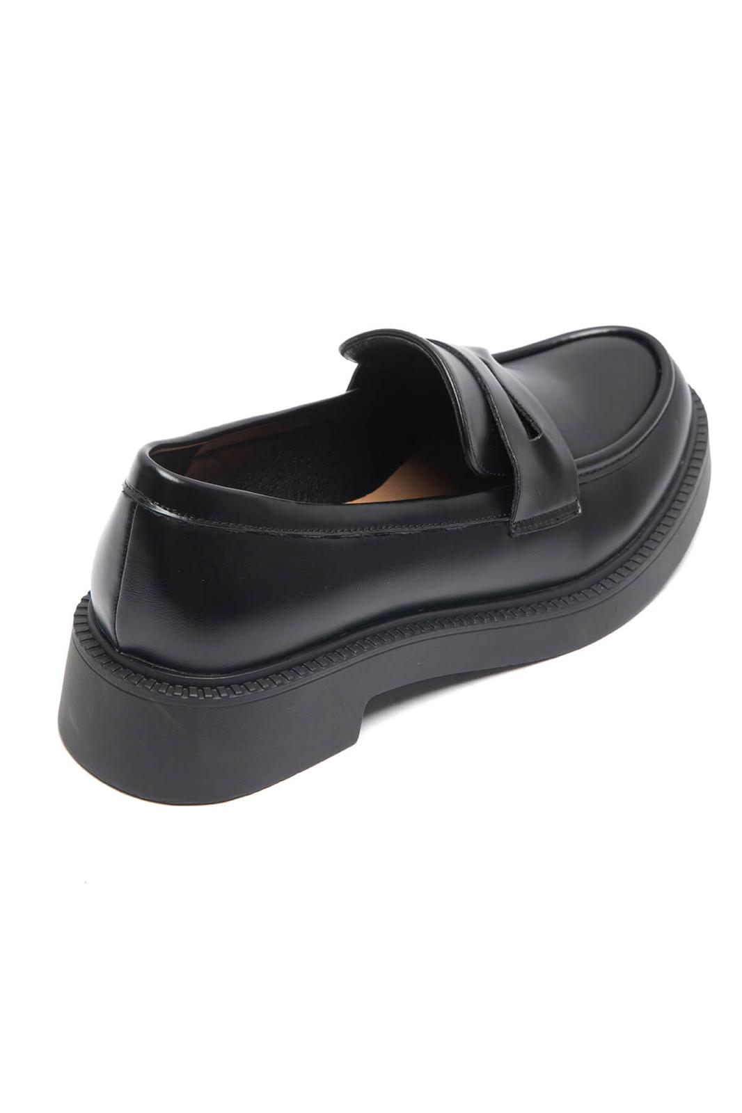 Mocassins noirs en cuir lisse au design épuré et intemporel – Détail métallique subtil sur le dessus pour une touche moderne – Semelle épaisse et discrète, combinant style et confort – Finition brillante, idéale pour des tenues variées – Parfaits pour un look professionnel ou décontracté-chic