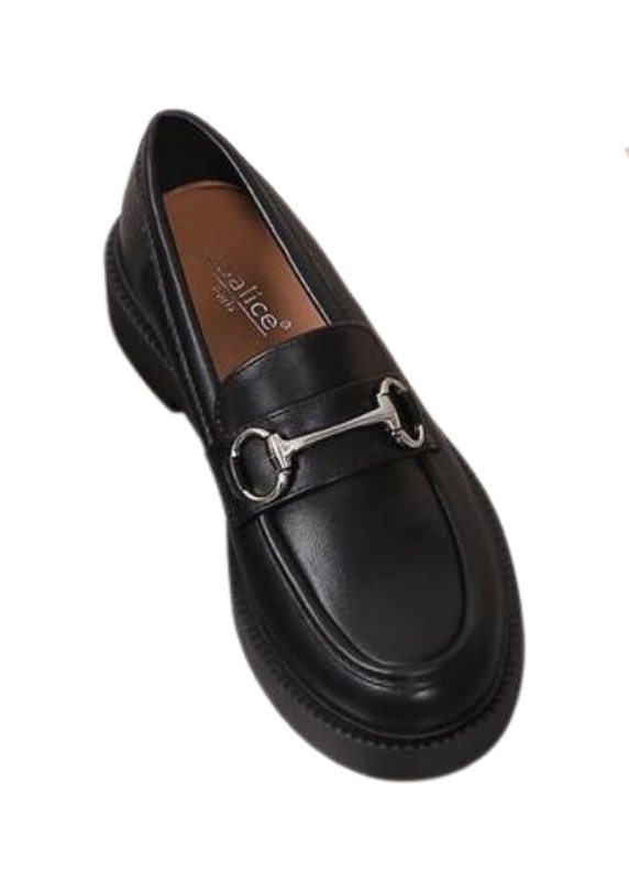 Mocassins noirs en cuir lisse au design épuré et intemporel – Détail métallique subtil sur le dessus pour une touche moderne – Semelle épaisse et discrète, combinant style et confort – Finition brillante, idéale pour des tenues variées – Parfaits pour un look professionnel ou décontracté-chic