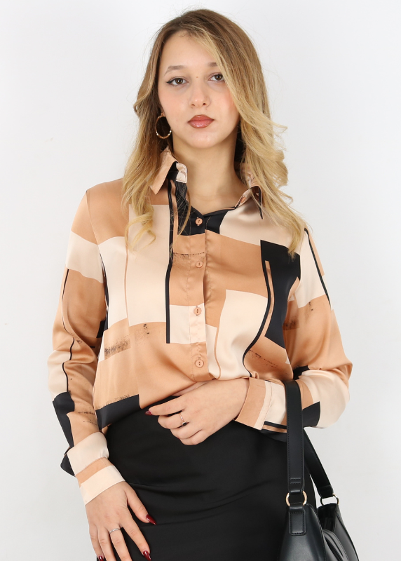 Chemise à manches longues – Col classique – Fermeture boutonnée sur le devant – Tissu fluide et léger – Style tendance et chic – Idéale pour une tenue élégante ou décontractée