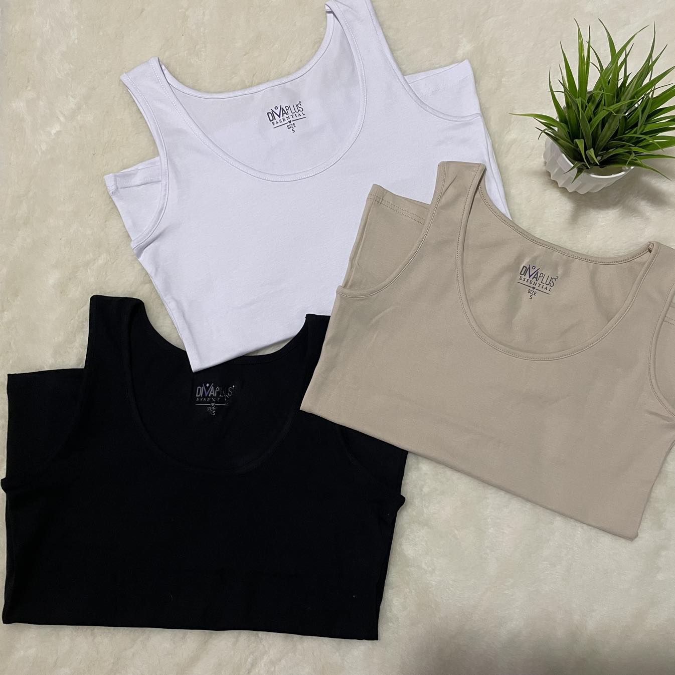 Lot de 3 Débardeurs en 100% Coton, épouse les formes généreuses et procure un confort optimal. Finitions du décolleté pour une féminité discrète.