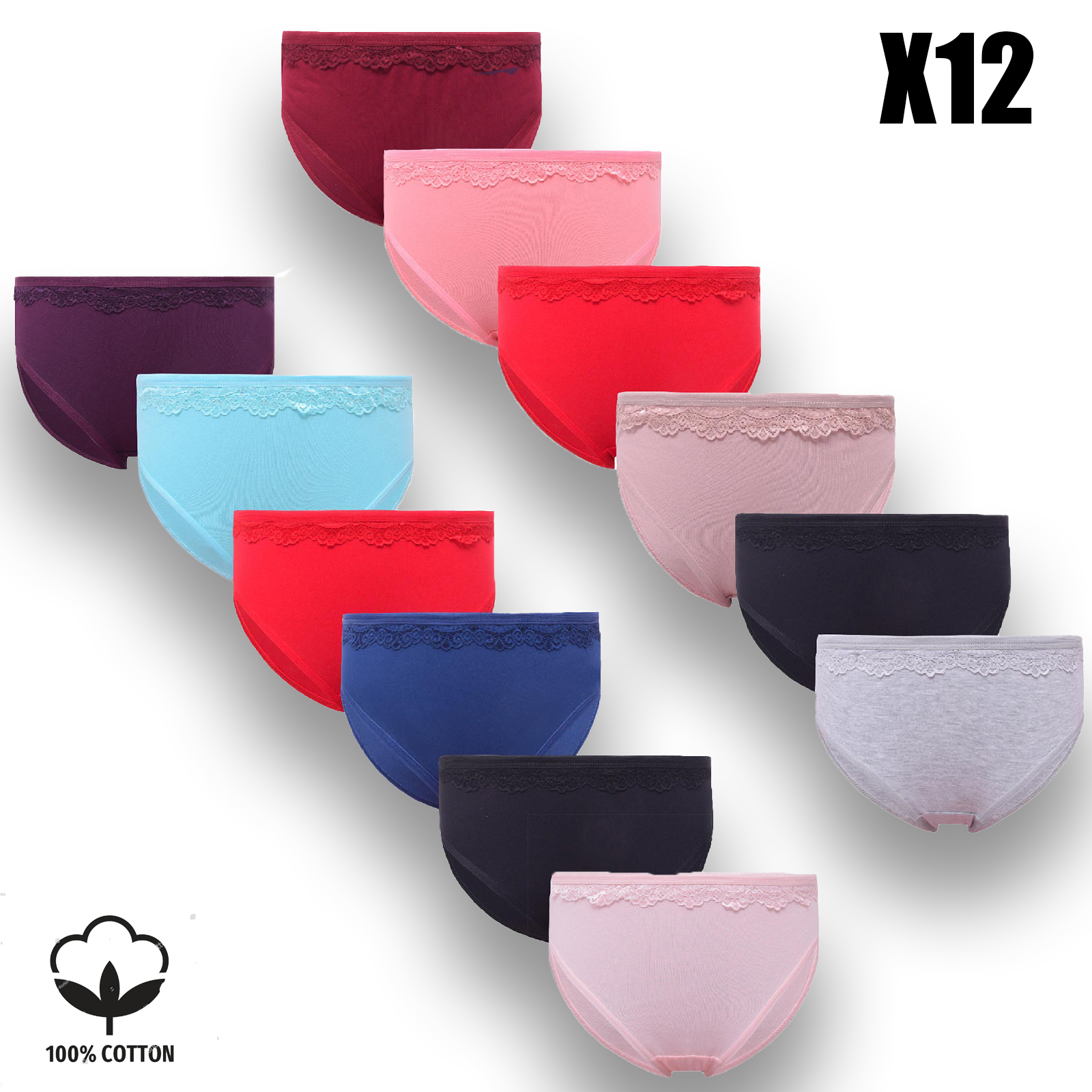 Pack de 12 culottes unies et à rayures en côte originale, fabriquées à 95 % en coton.