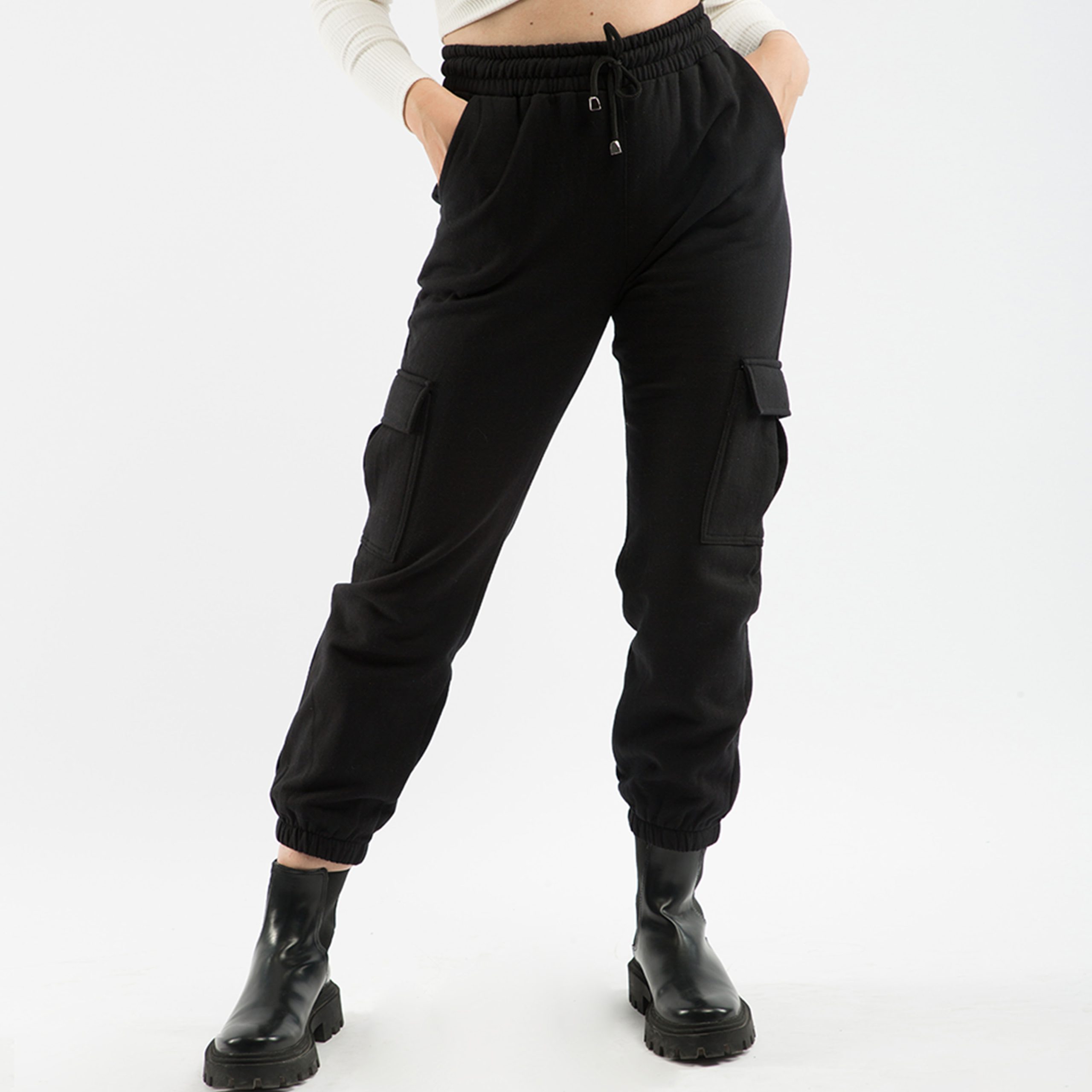 Pantalon cargo en molletonné grattée resserrée au chevilles,