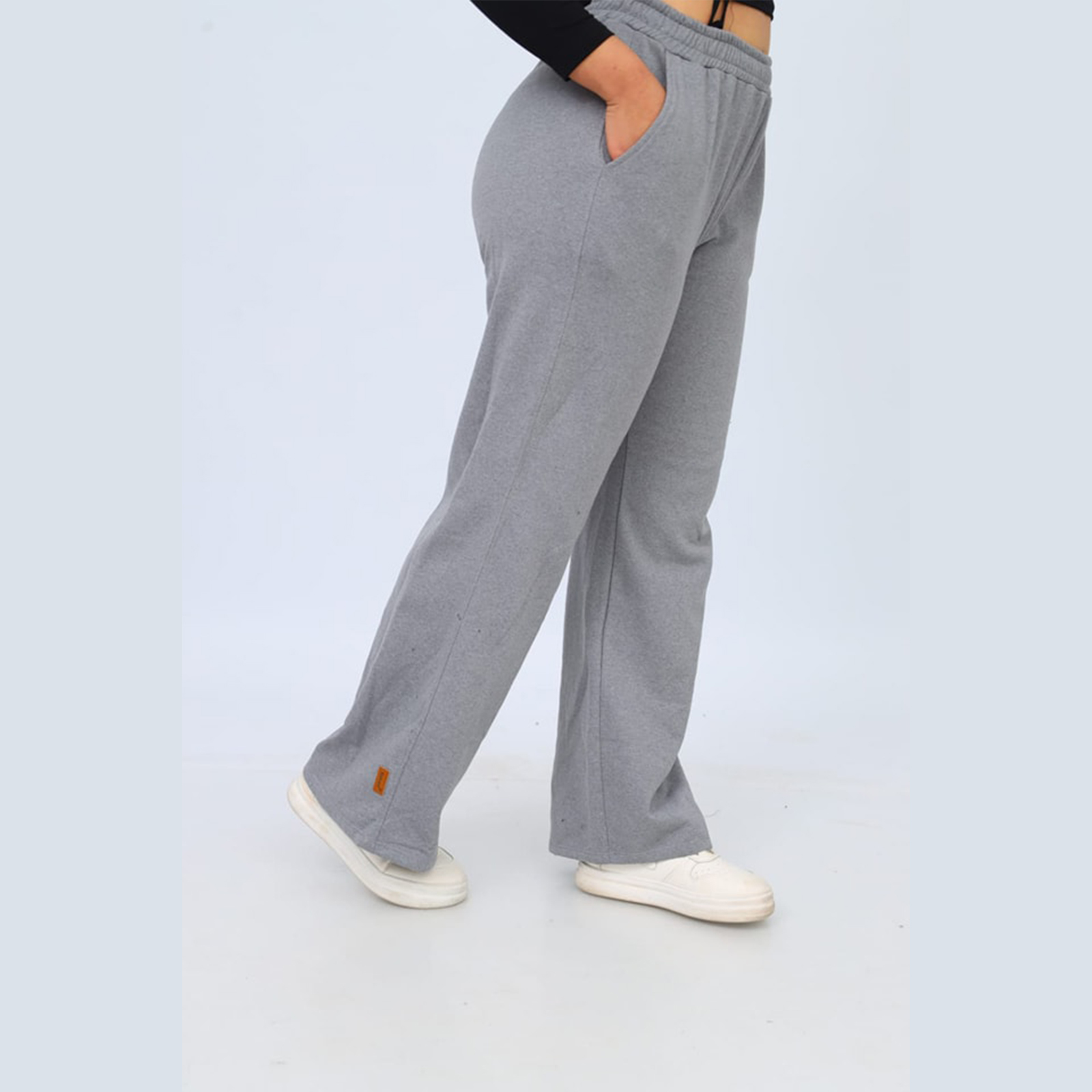 45.0 DTPantalon Femme Large en Molleton Gratté – Gris Clair