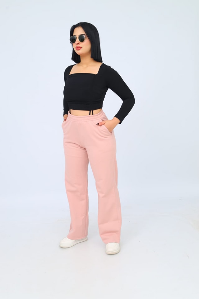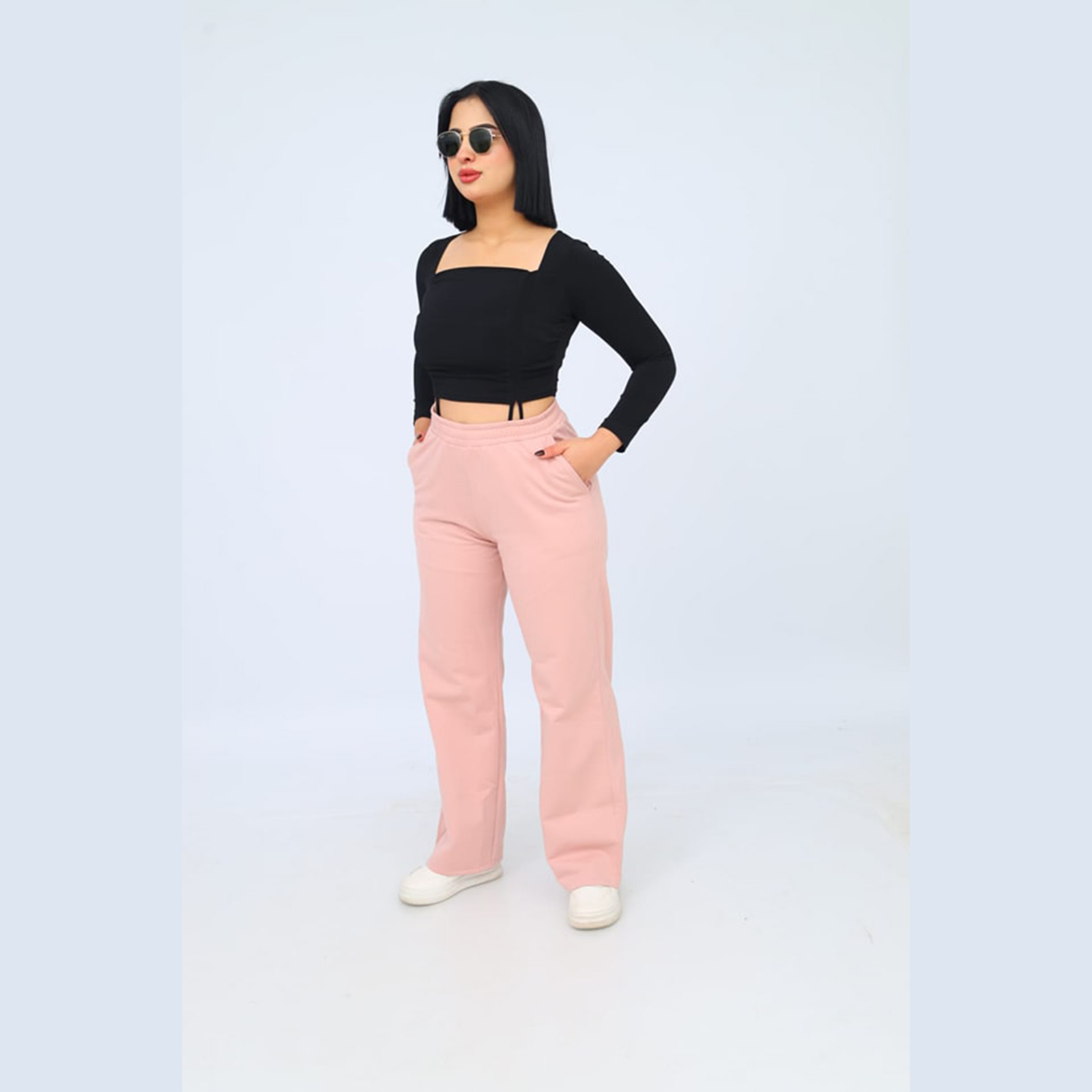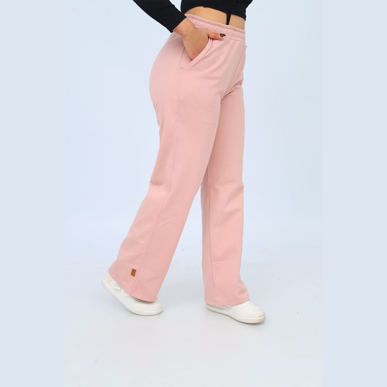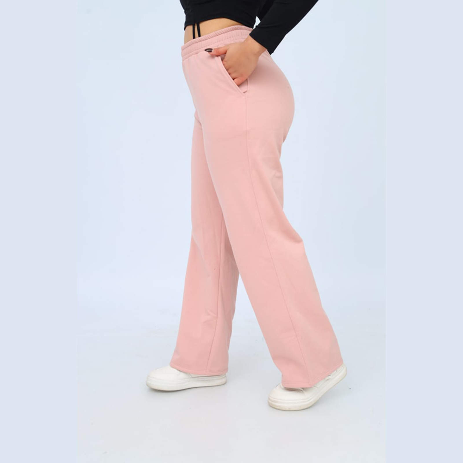 Pantalon Femme Large en Molleton Gratté – Rose Poudré
