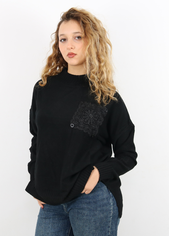 Pull basique – Modèle moulant en maille – Col rond – Manches longues