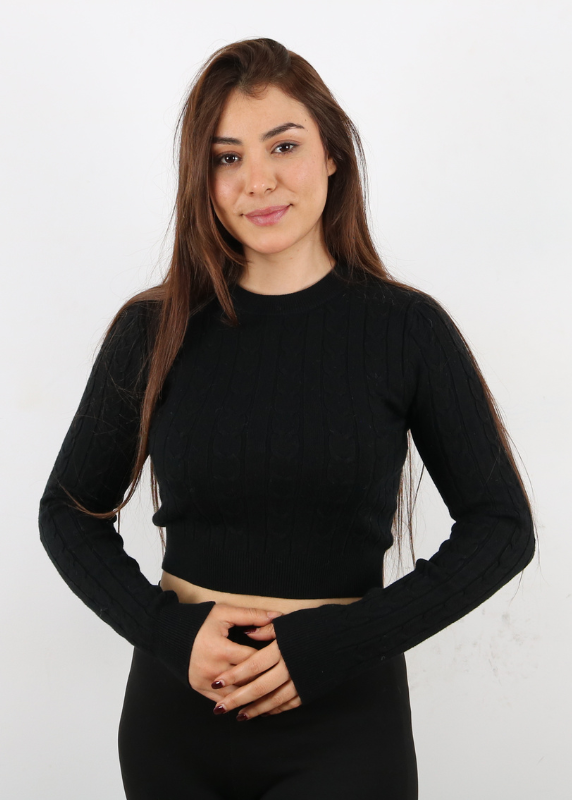 Pull basique – Modèle moulant en maille – Col rond – Manches longues
