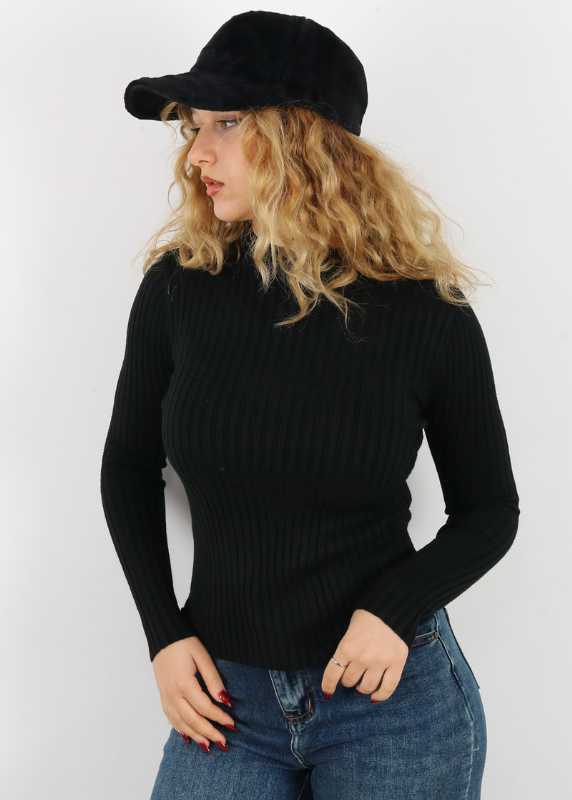 Pull basique – Modèle moulant en maille – Col demi roulé – Manches longues