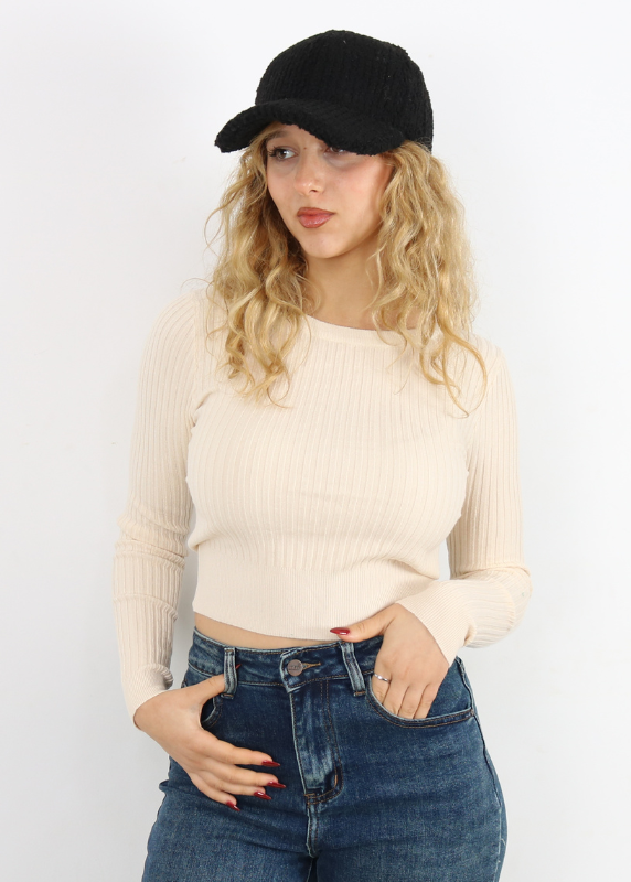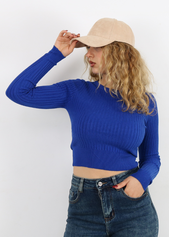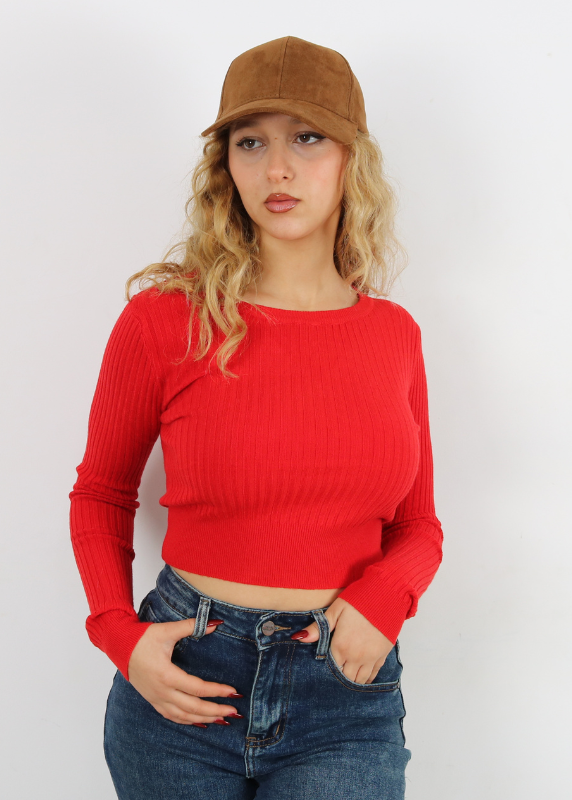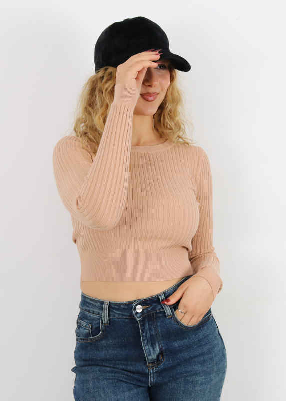 Pull basique – Modèle moulant en maille – Col demi roulé – Manches longues