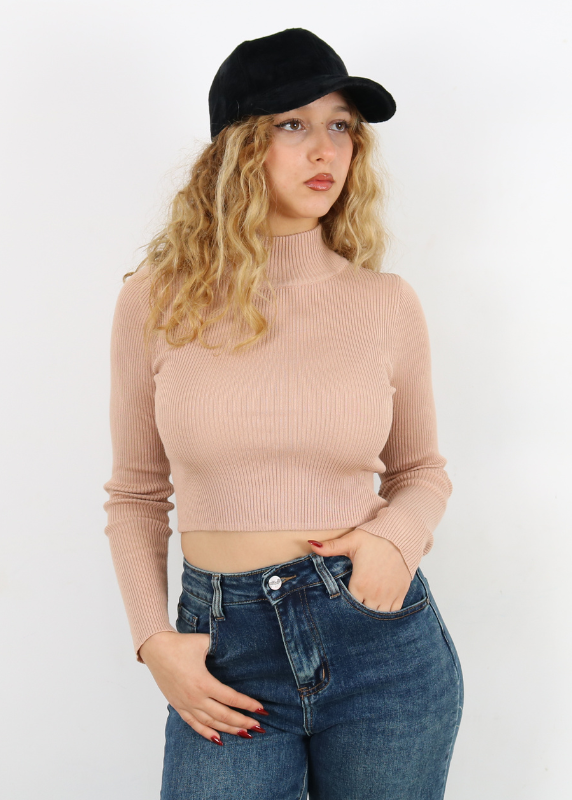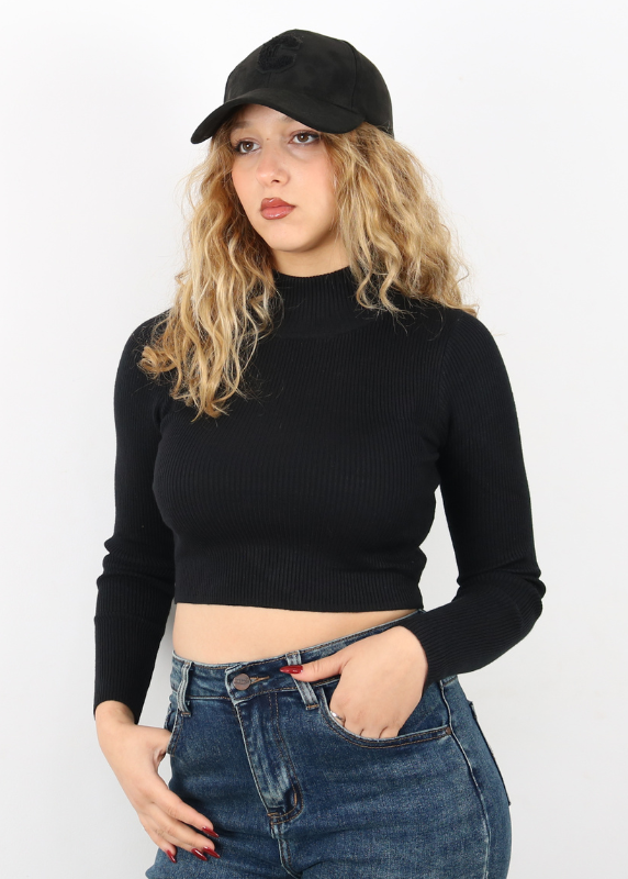 Pull basique – Modèle moulant en maille – Col demi roulé – Manches longues