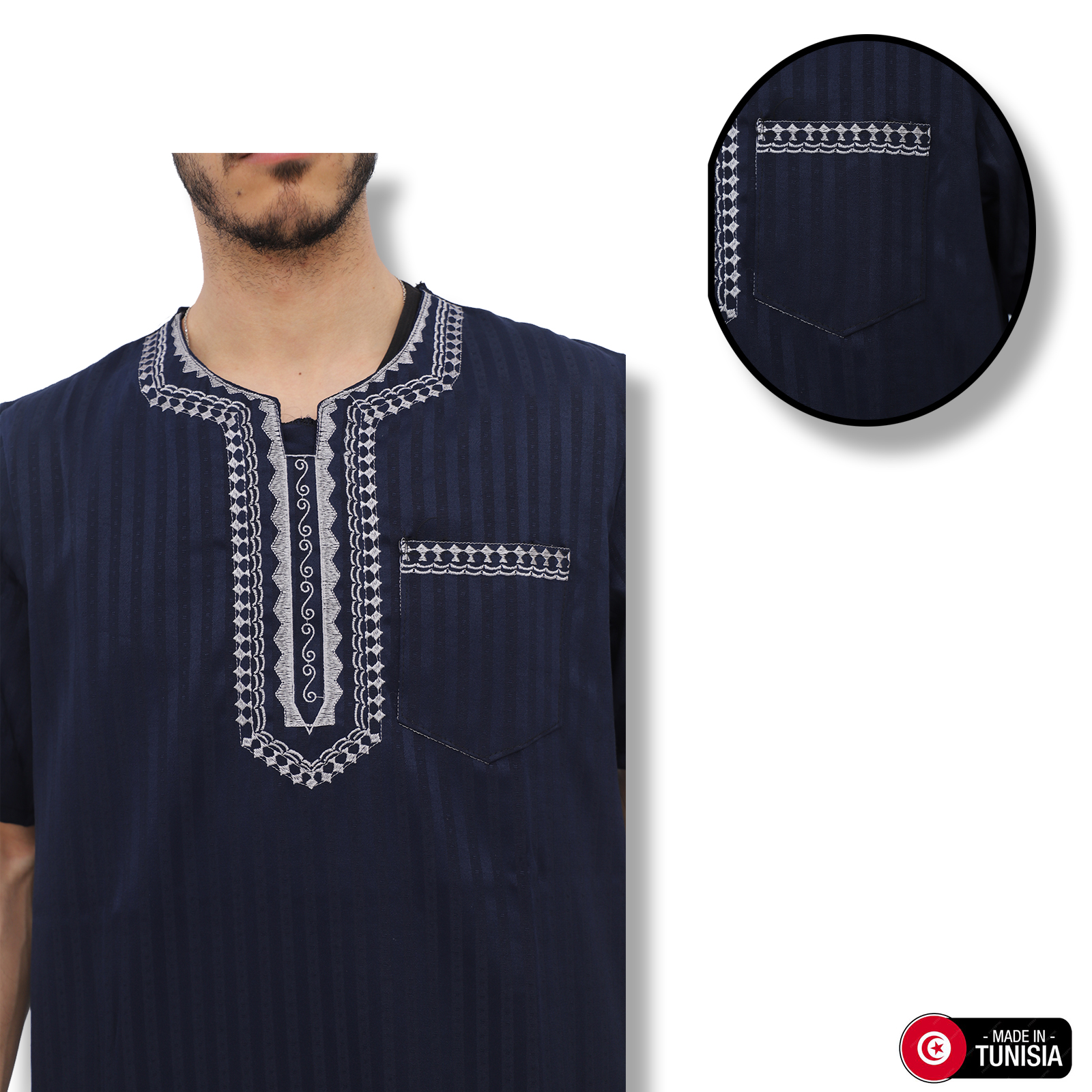 ✔ Broderies élégantes : Motifs raffinés sur le col et la poitrine pour un look traditionnel chic.