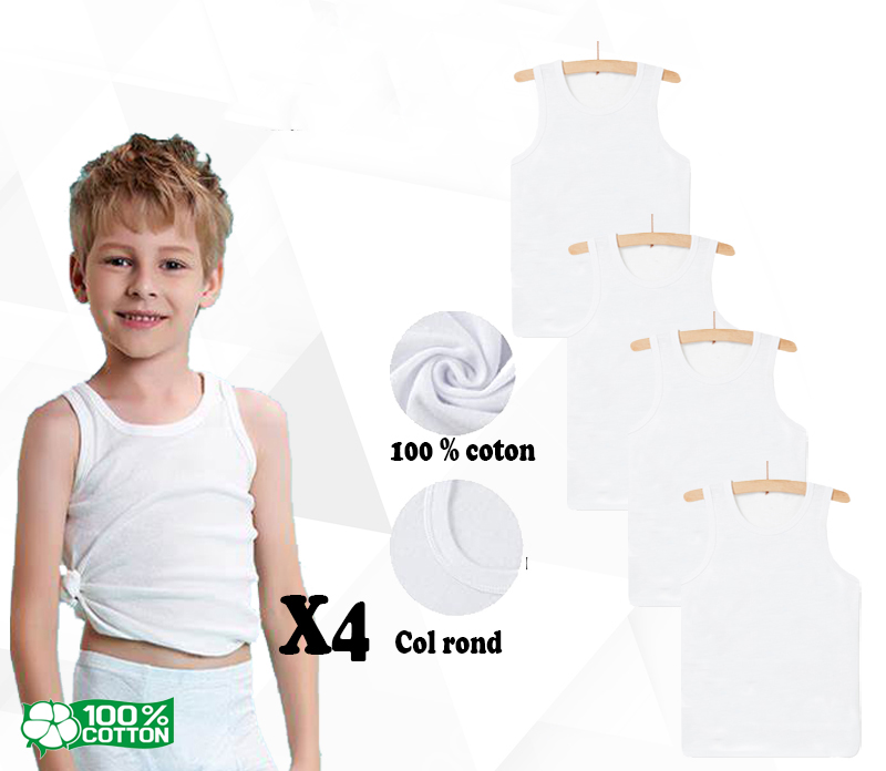 Lot 4 Débardeurs Pour garçons Blanc Coton
