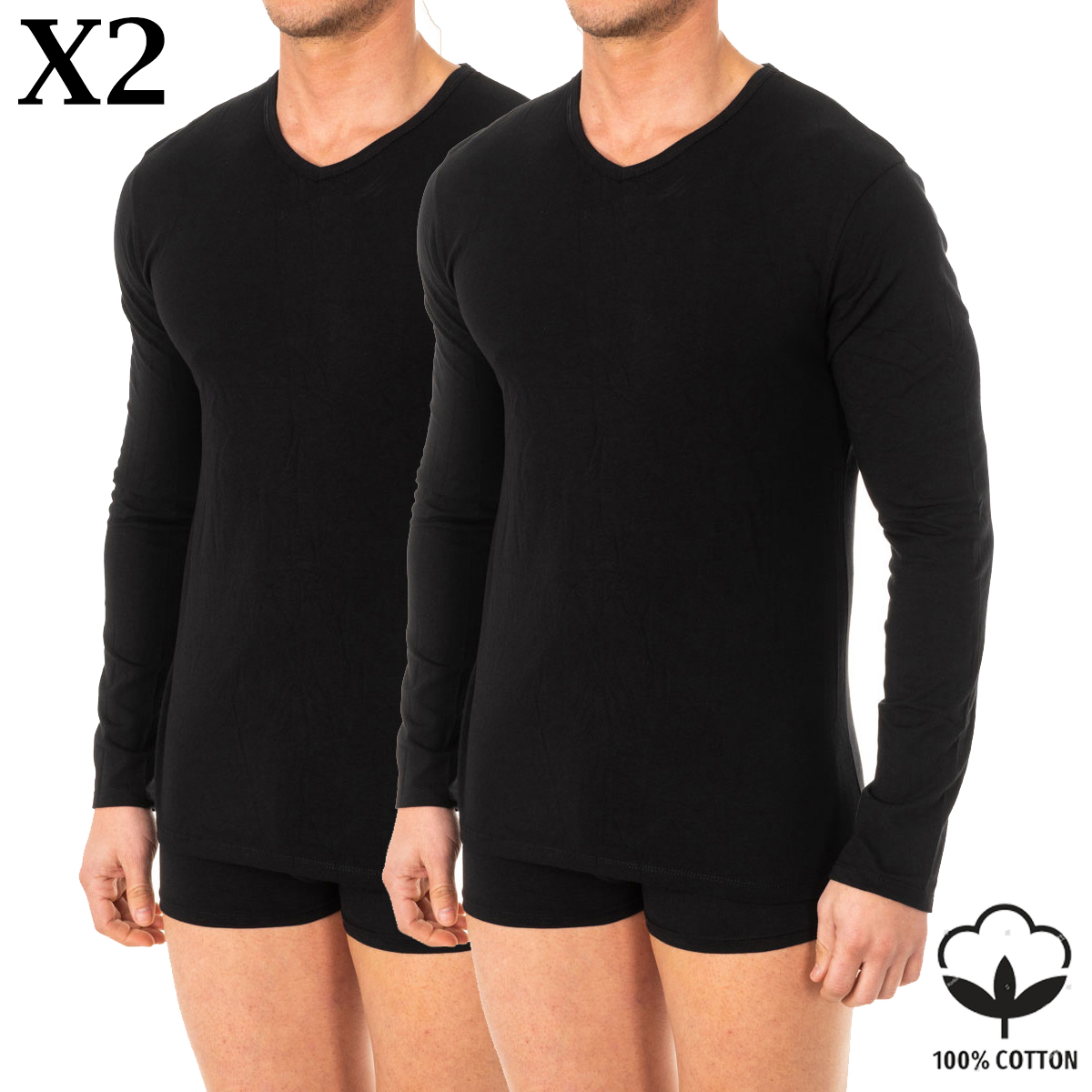 Pack 2 Pulls Manche Longue Coton Noir Col V