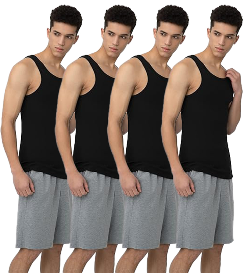 Découvrez notre pack de 4 débardeurs pour homme, confectionnés à partir de 100% de coton de haute qualité. Ces débardeurs arborent un type de col ras du cou intemporel pour un look classique et polyvalent.