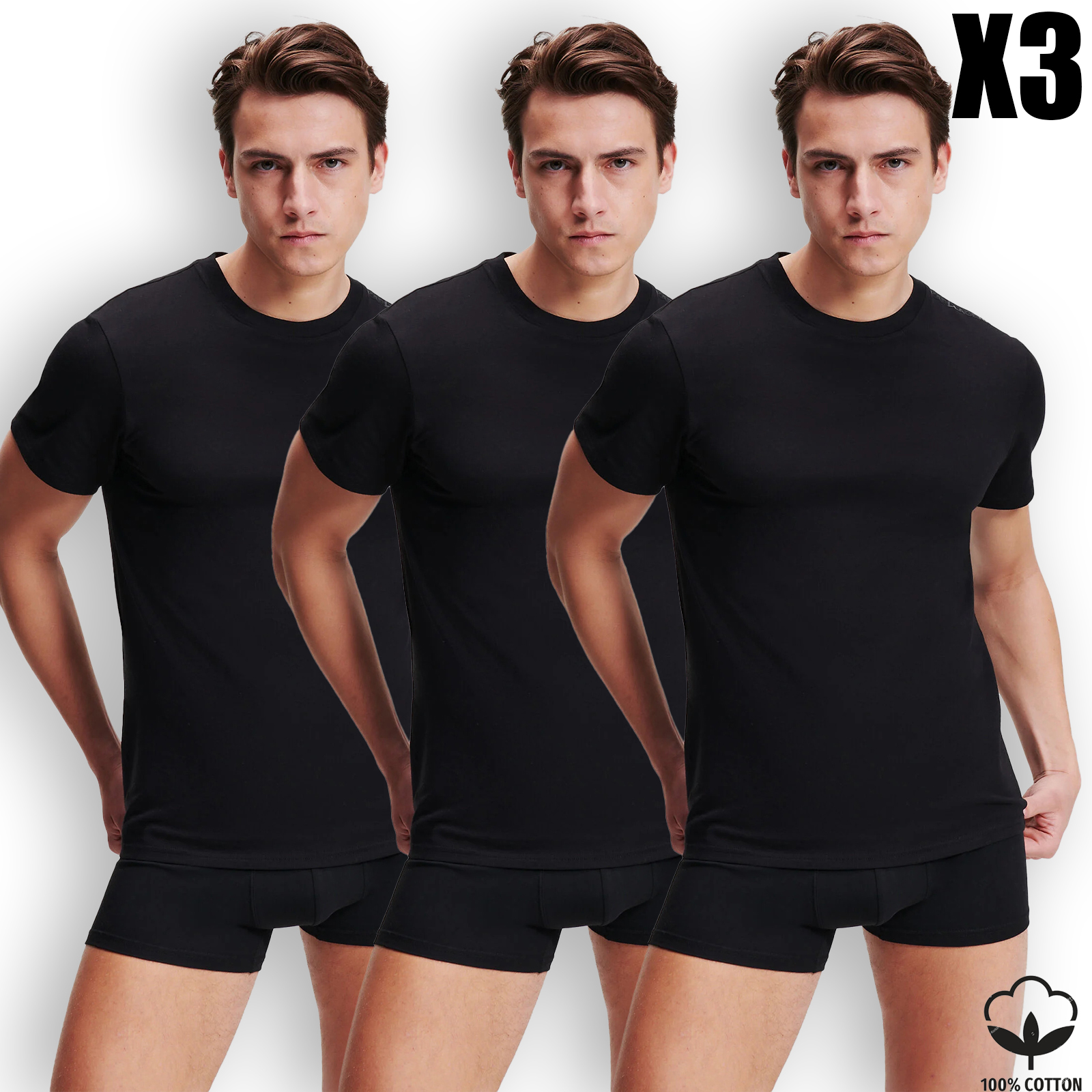 Pack de 3 T-Shirt Col Rond Noir Coton